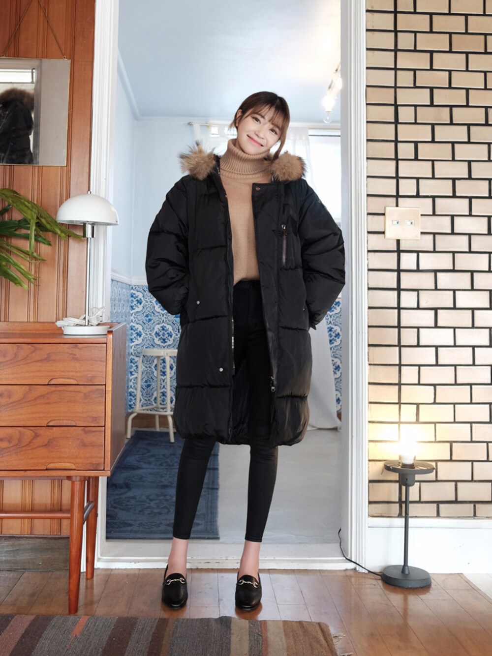 FLYMODELのTシャツ/カットソー「シンプルリアルラクーンファーフードジップアップダウンコート(P0000RCD)」を使ったコーディネート