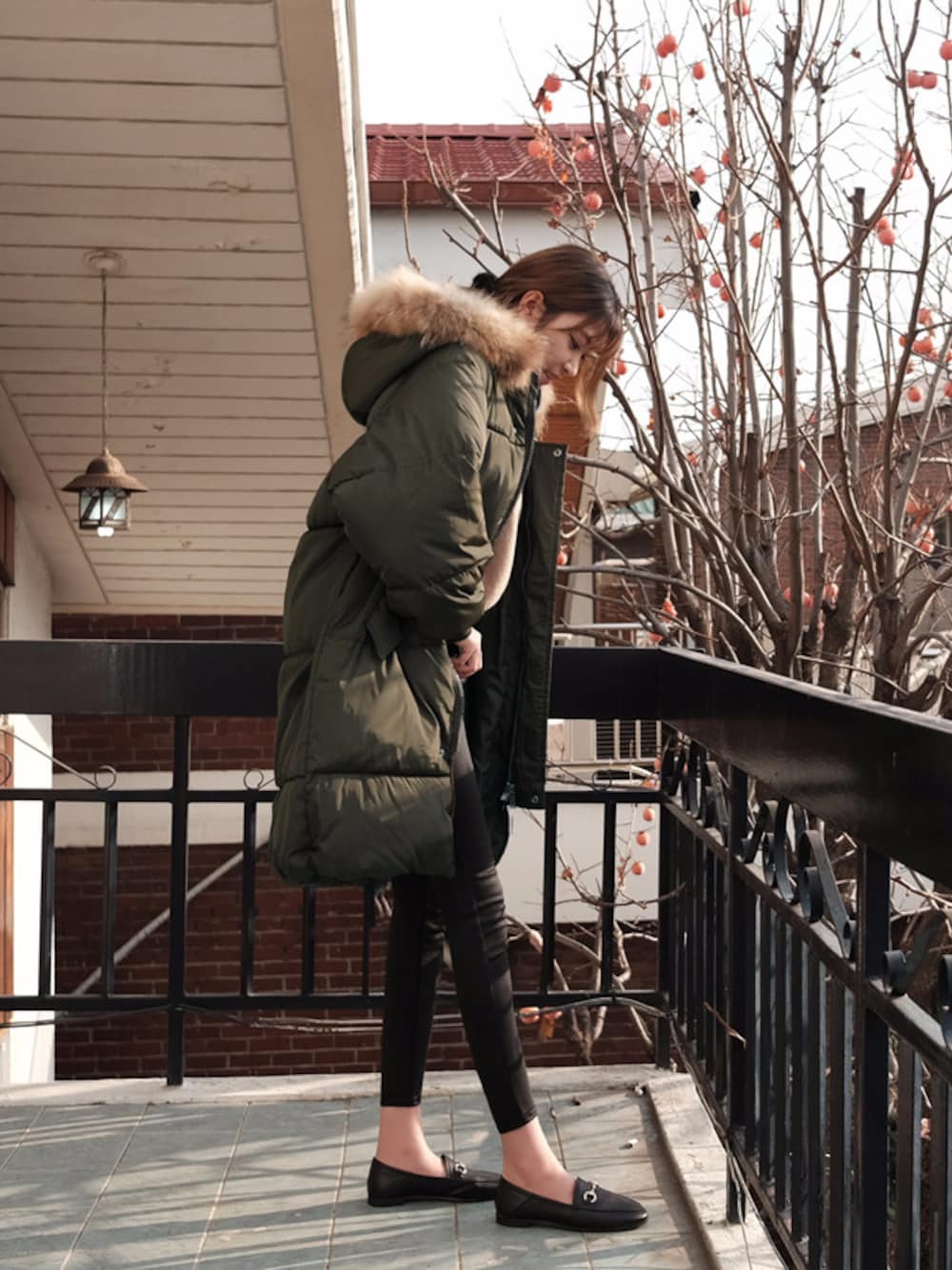 FLYMODELのTシャツ/カットソー「シンプルリアルラクーンファーフードジップアップダウンコート(P0000RCO)」を使ったコーディネート