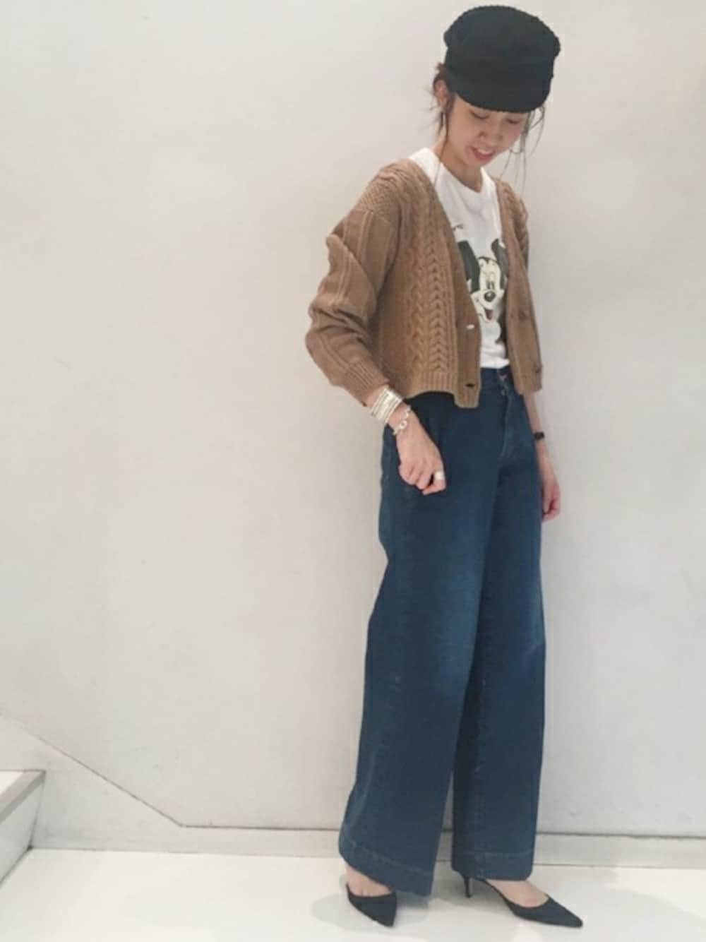 eripoyoのデニムパンツ「ライトオンスデニム ワイドパンツ ネイビー◆ 」を使ったコーディネート