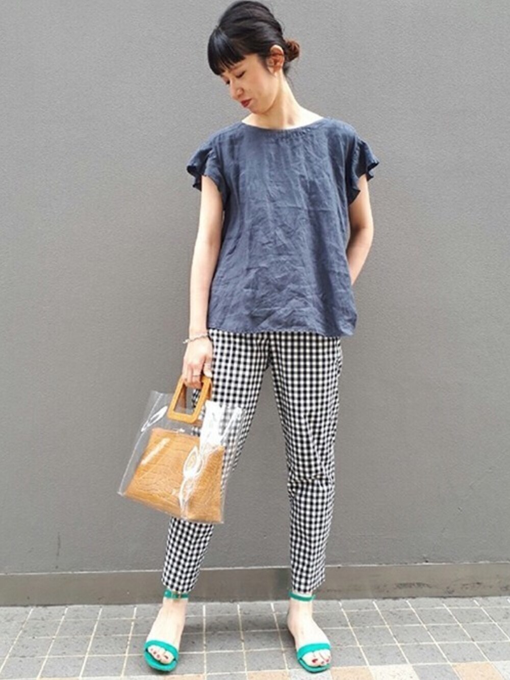 程よい腕のフリルと、袖のカットが甘すぎず さらっと着れます。 長めの丈感が、お腹周りもさらっとカバーします。