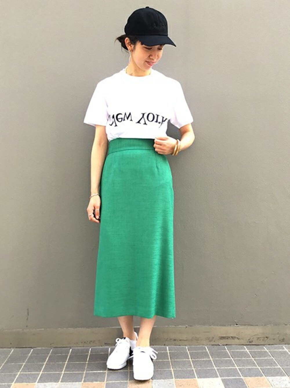 さらっとしていて、ストレッチもきいて履きやすいスカートは、 カジュアルアイテムにミックスしたスタイリングがお洒落です