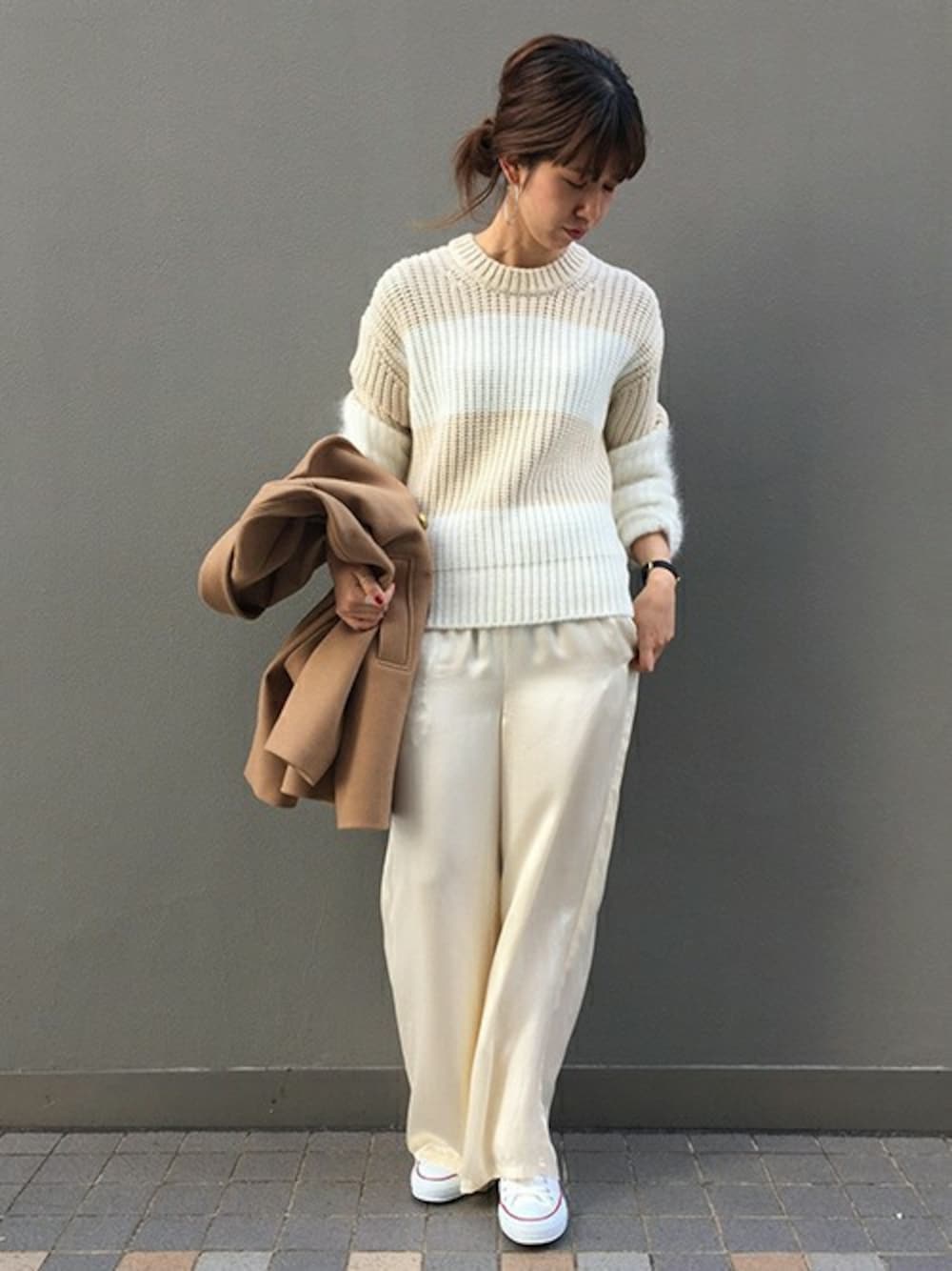 eripoyoのニット/セーター「アンゴラボーダー プルオーバー◆」を使ったコーディネート