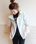 大人気のマウンテンパーカーは今季の新色ライトグレーでかっこよく。 モノトーンでカジュアルアイテムもモードに着こなせます。