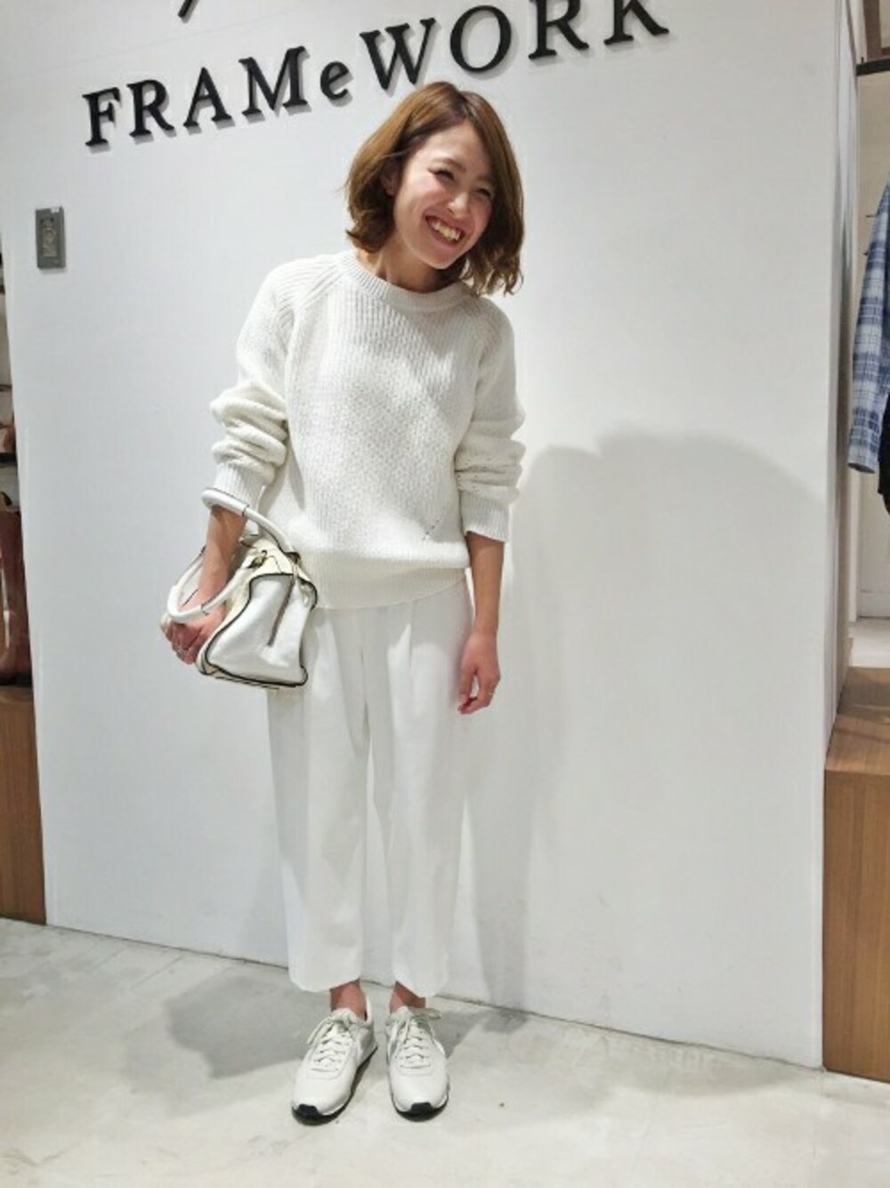 春のオススメコーデ!オールホワイト♪素材感の違いが白合わせでも着やすくなります!今年らしいワイドパンツも取り入れて★