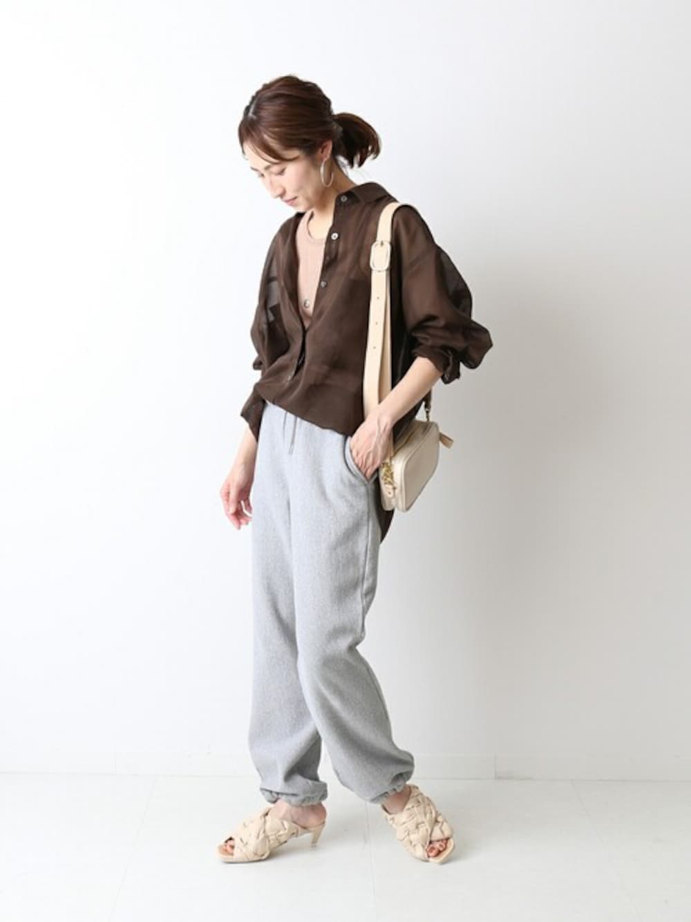 きれいに穿けるスウェットパンツ。 裾をぎゅっと絞ってヒール合わせも可愛いです。