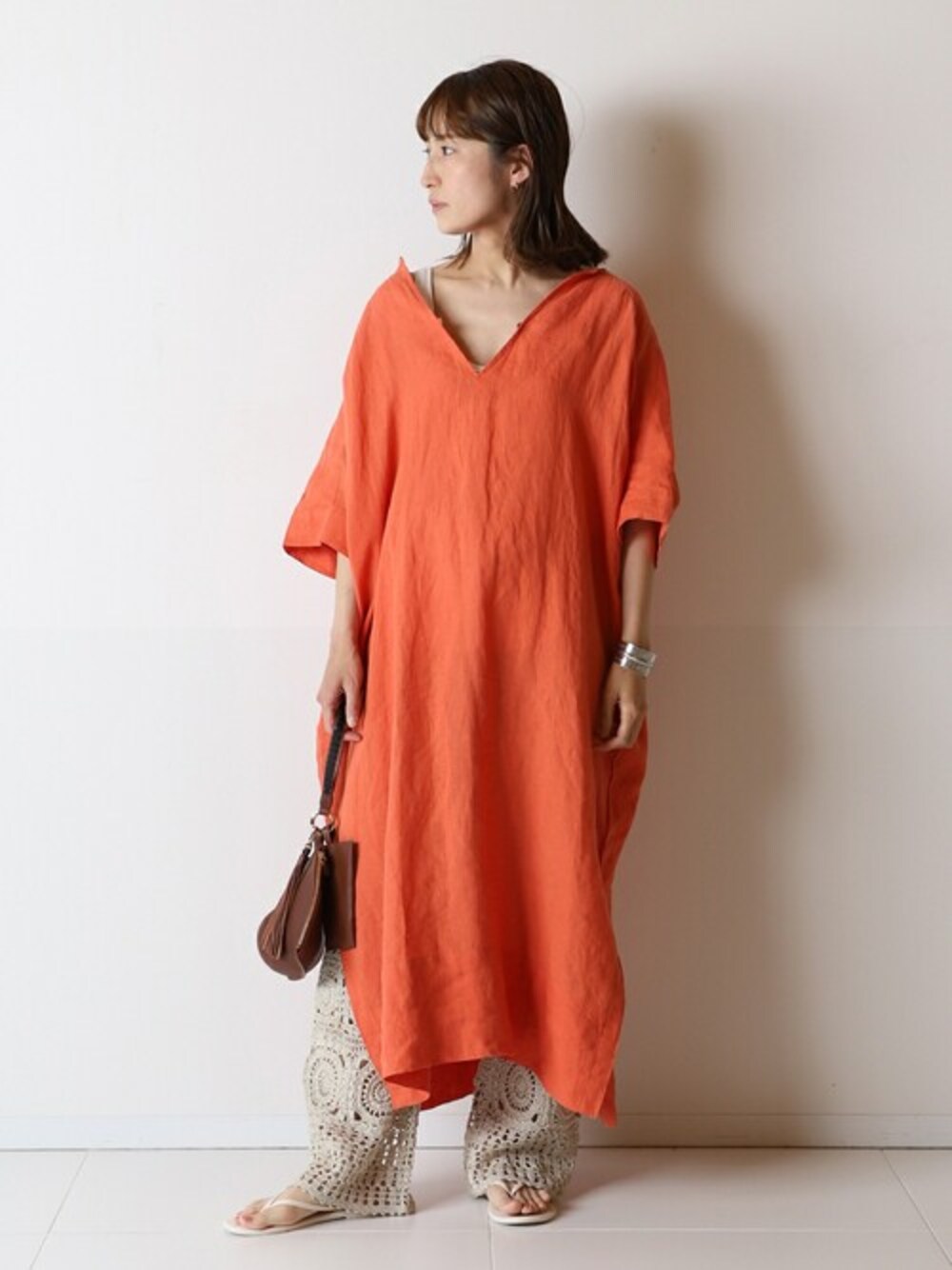 ぱきっとしたオレンジカラーが映えるワンピースです🐻 レースのパンツとあわせてレイヤードスタイルを楽しむのもおすすめ◎