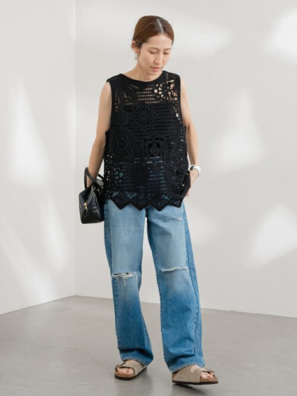 【コットン刺繍ブラウス】 パッチワークのような贅沢な刺繍が魅力のブラウス。 裾はアシンメトリーにすることでニュアンス感をプラスしました。 一枚で着るのはもちろん、サロペットなどのインナーとして合わせるスタイルもおすすめ。
