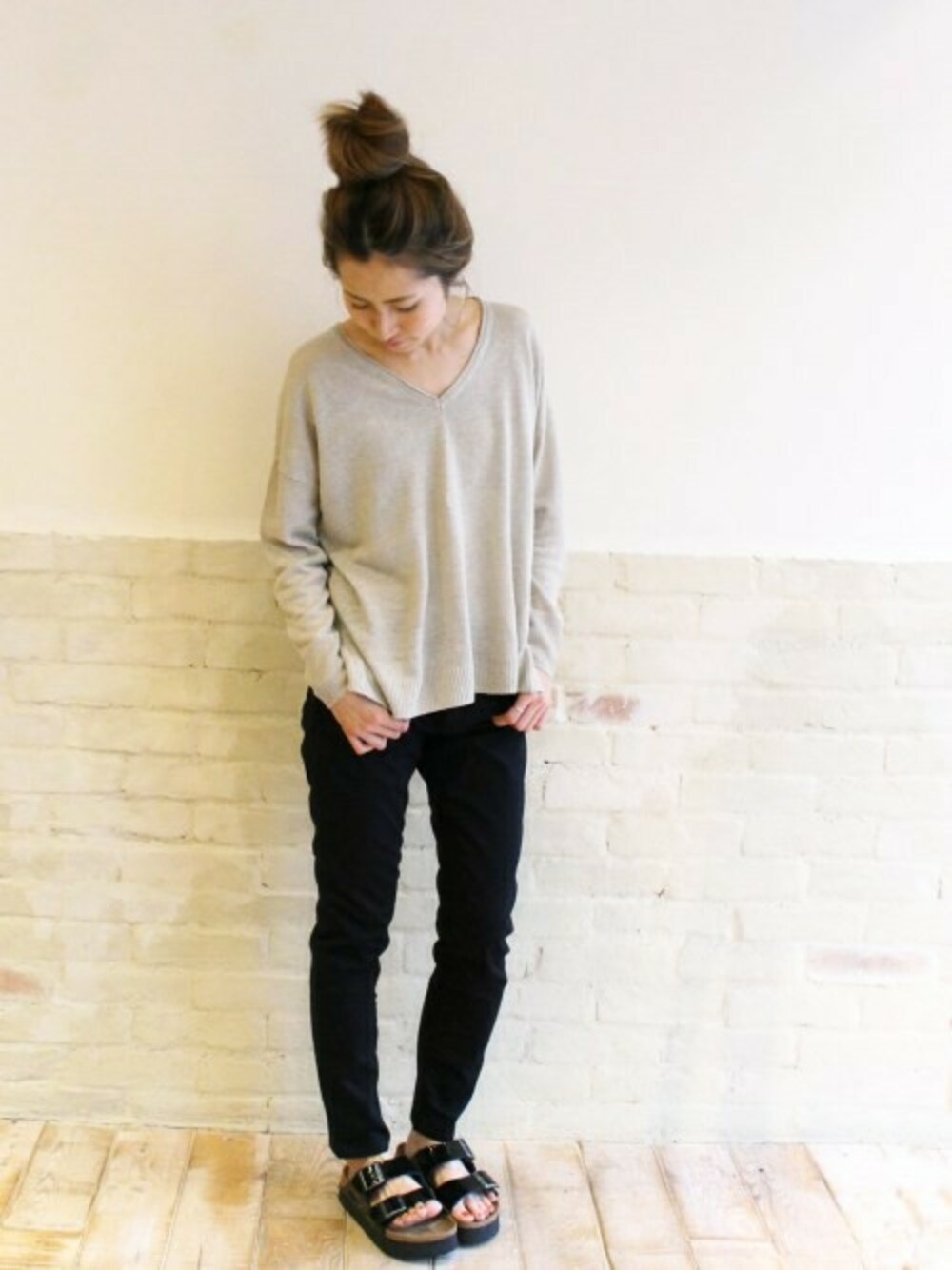 haru(FRAMeWORK 本社)のニット/セーター「TOP LINEN フカV プルオーバー。」を使ったコーディネート
