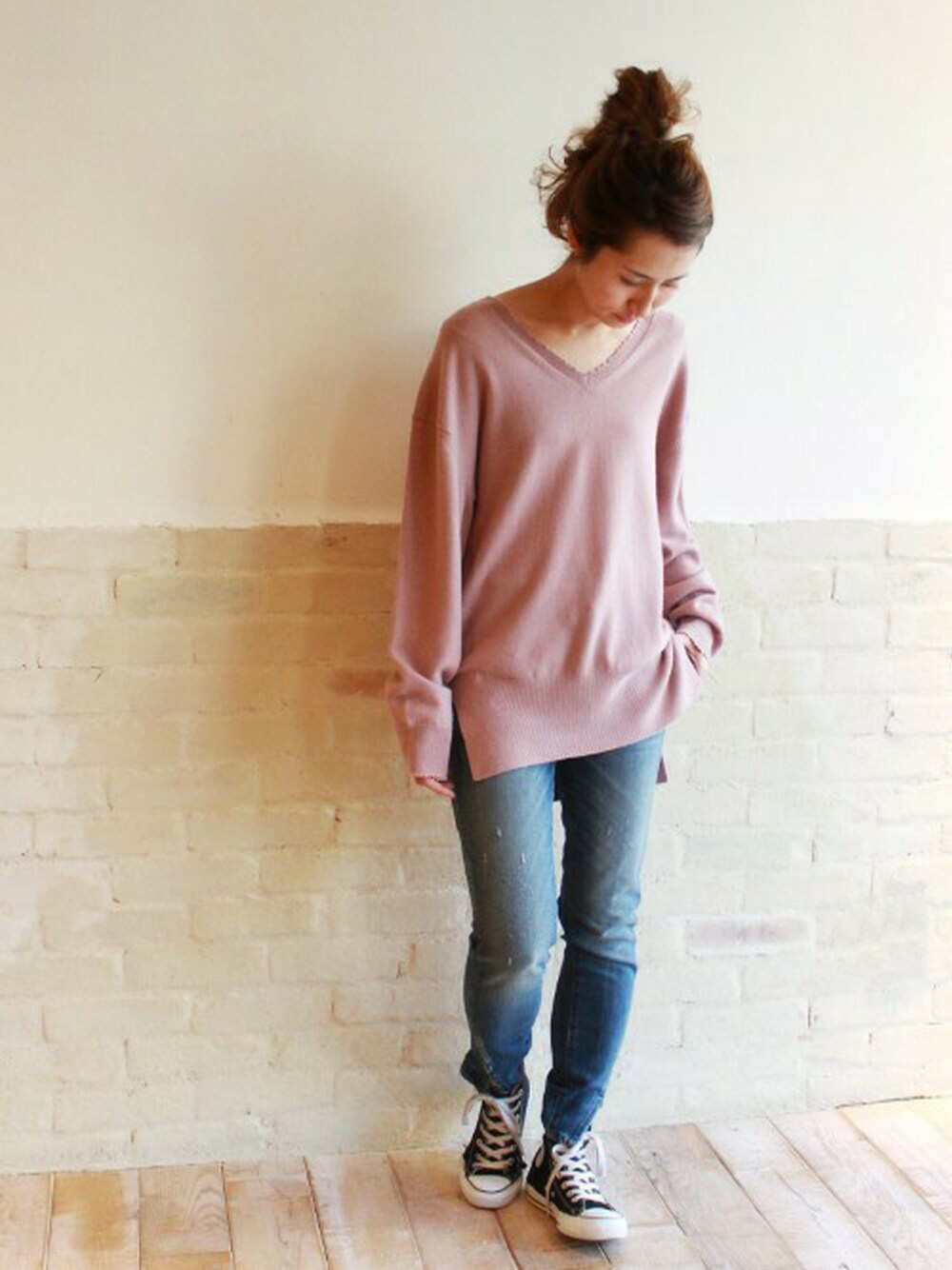 haru(FRAMeWORK 本社)のニット/セーター「Big Vネックプルオーバー◆」を使ったコーディネート