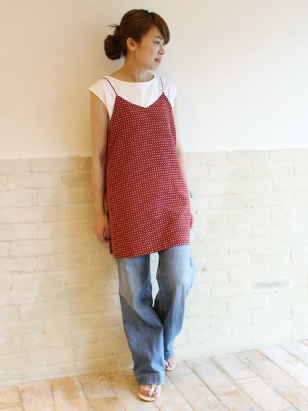 レトロっぽさが新鮮な小紋柄キャミ。 意外に細身なので、華奢な雰囲気です。