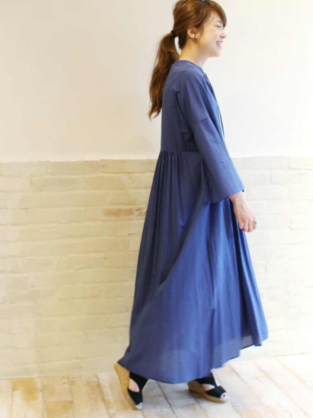 思わずふわっと揺らしたくなる、軽やかロングワンピース。 涼しげでリラクジングな着心地は、これから迎える暑い夏にぴったり。
