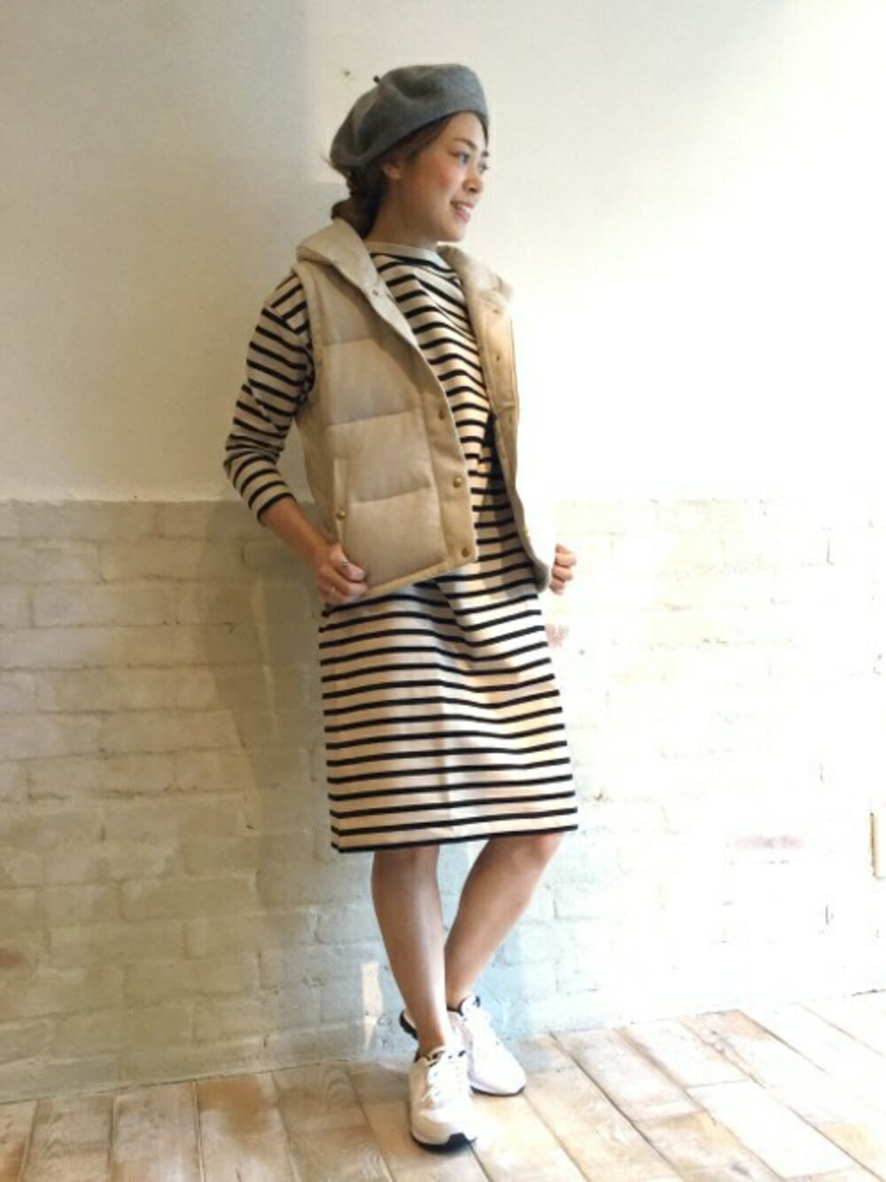老舗ブランドのORCIVALから、ストレッチ素材のワンピースが出ました! ダウンベストと合わせて、王道カジュアルに。