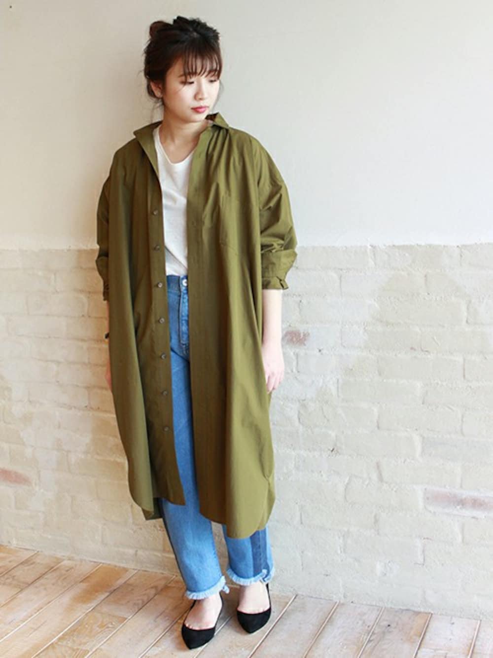 TICCAのロングシャツを羽織りとして。 ハリのある素材で空気感のあるシルエットがかわいい!