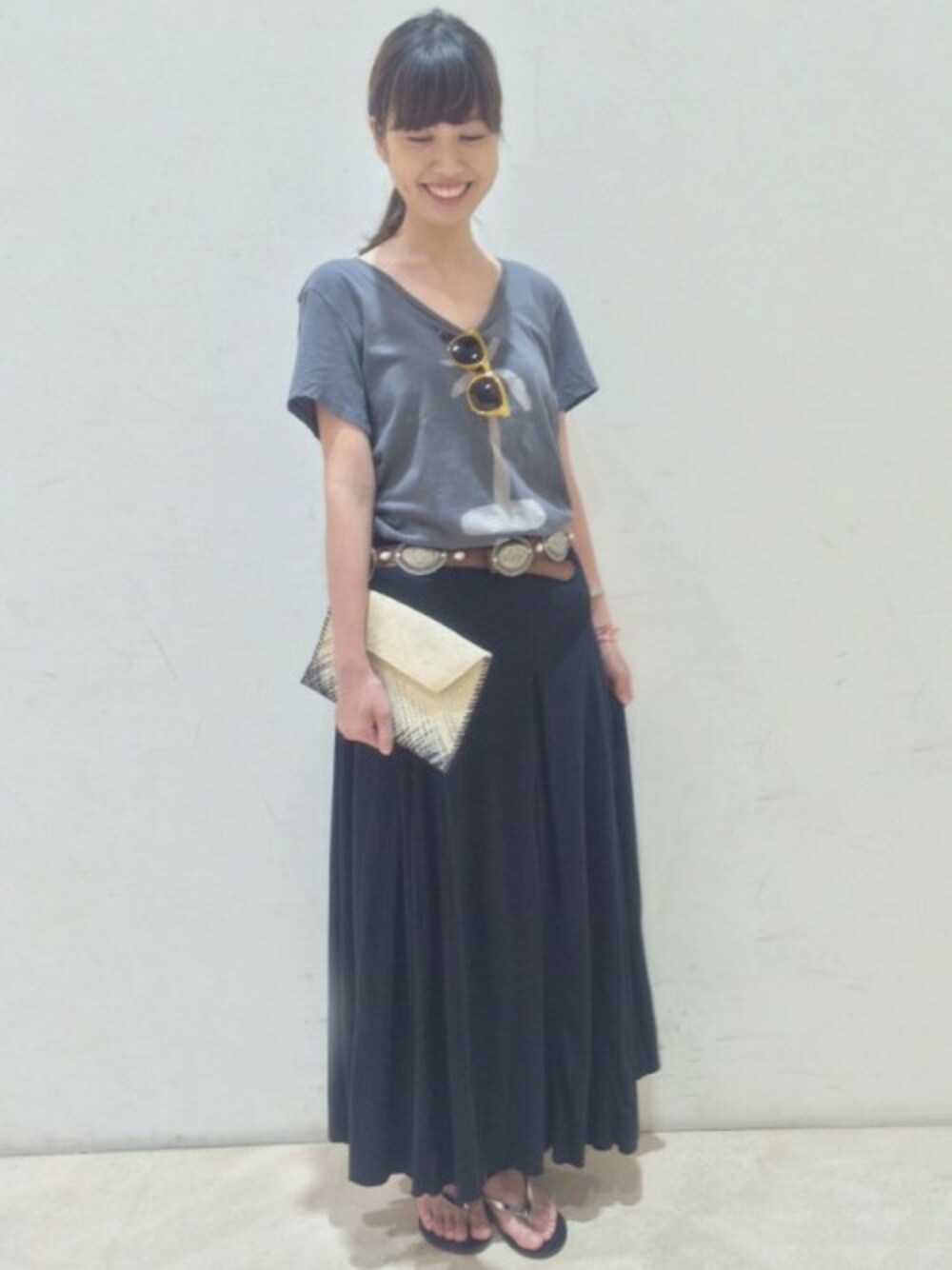 真夏に着たいTシャツ×マキシスカート♪小物でアクセントを加えてみました!