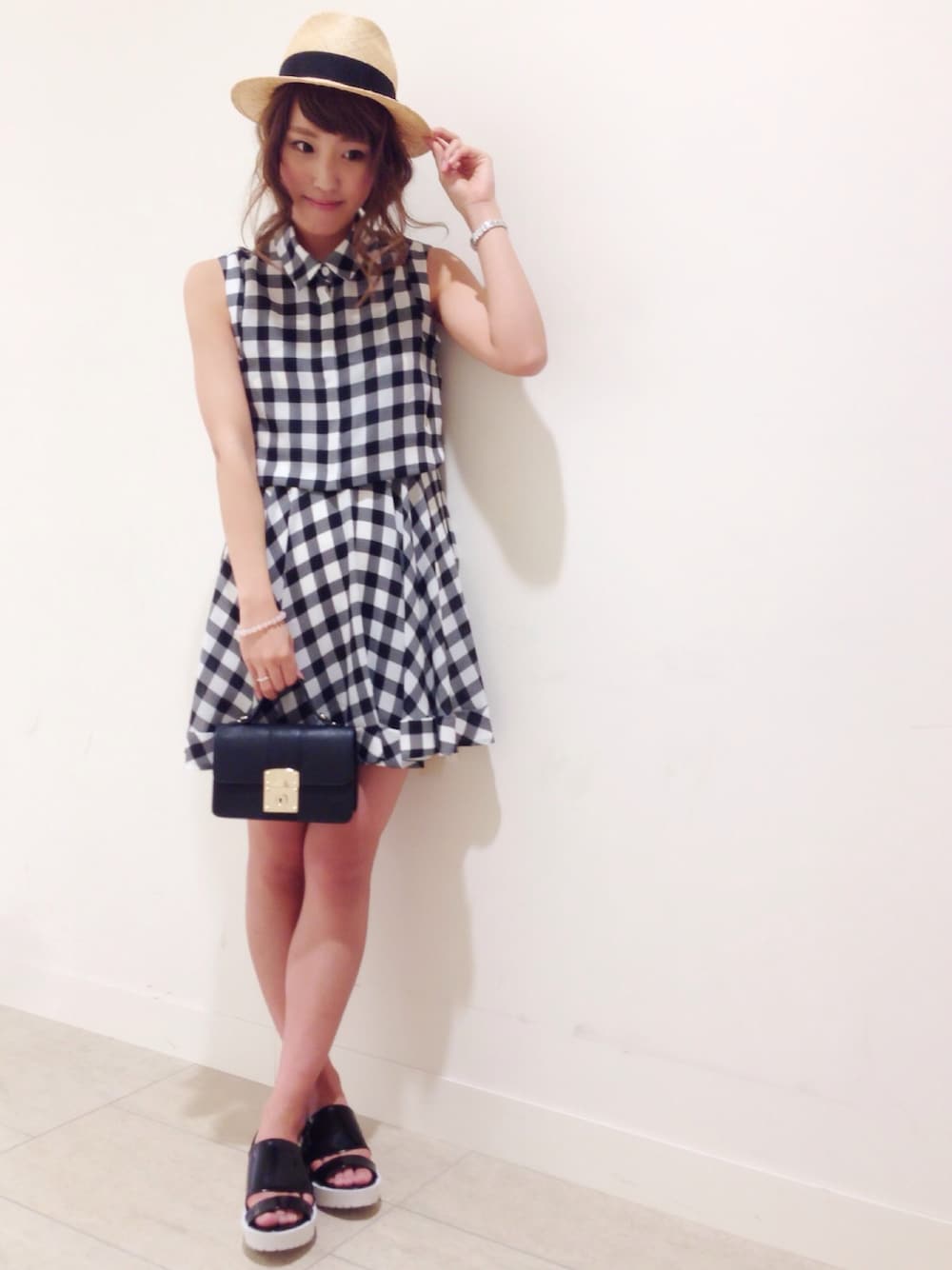 トレンドのギンガムチェックはハードなサンダルで甘さをおさえて♡