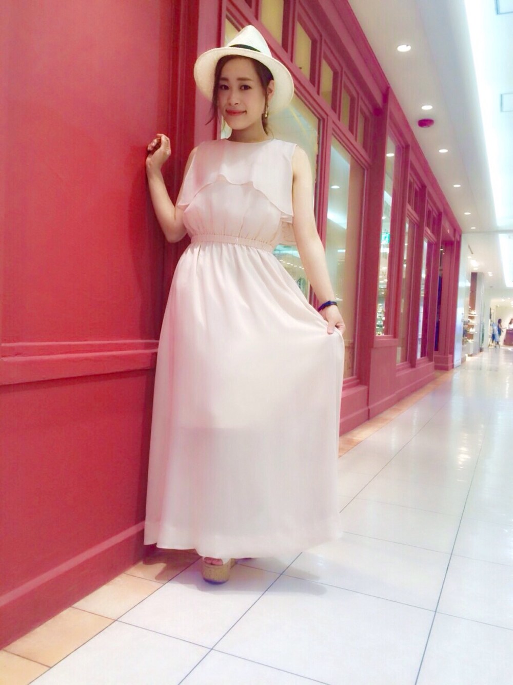 歩く度に揺れるシフォンがリラックスムード満点なマキシワンピは、柔らかいカラーを選んで女性らしく♡