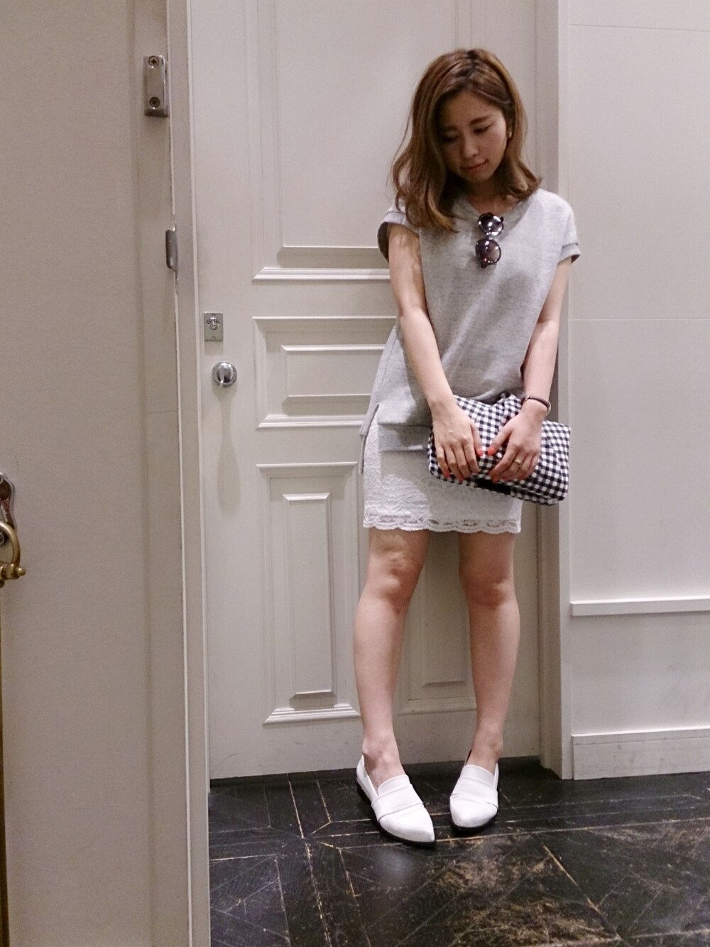 nozomi mizuguchiのクラッチバッグ「キャンバスリボンチェッククラッチバッグ」を使ったコーディネート