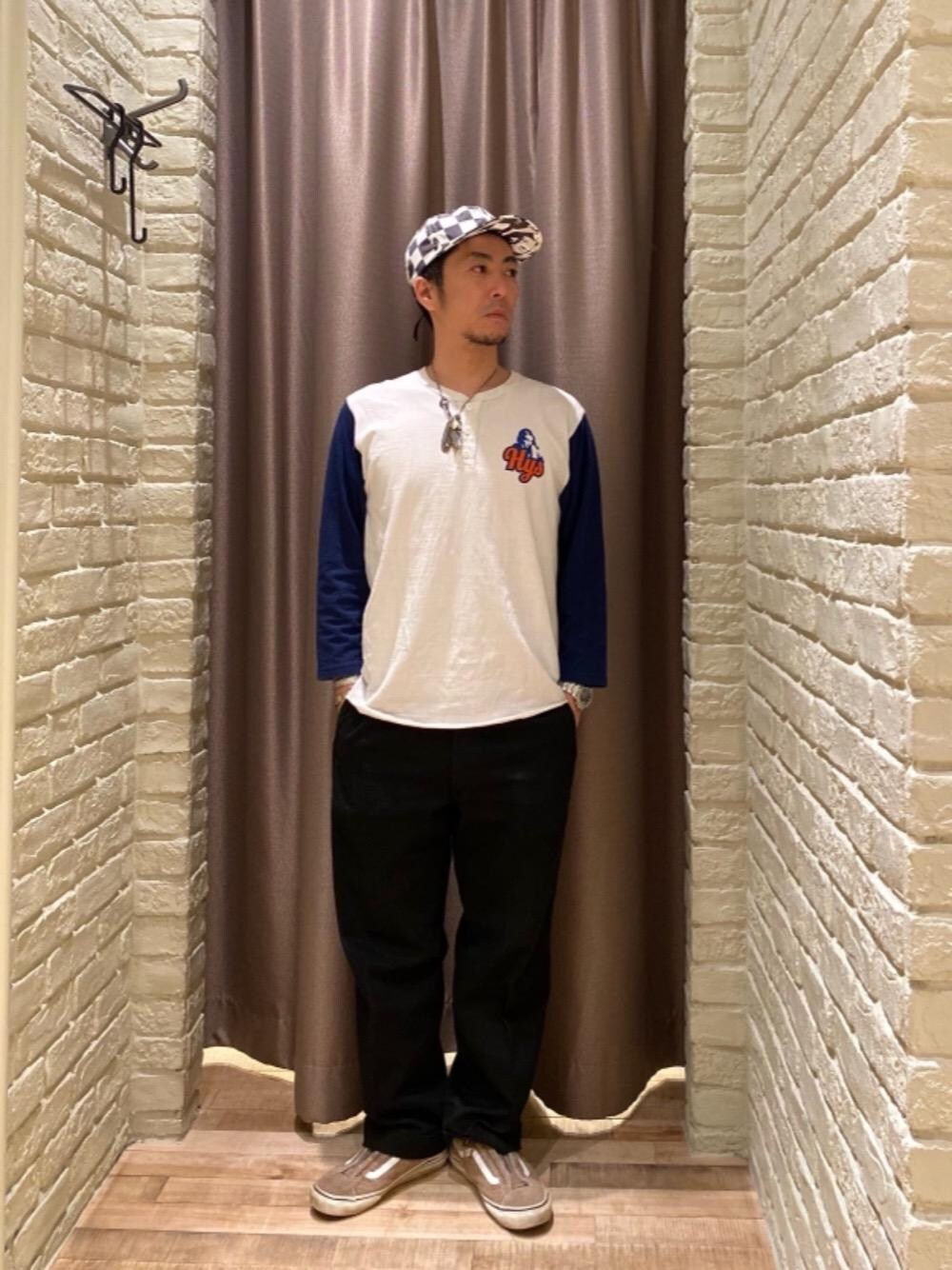 HAMA(HYSTERIC GLAMOUR札幌ステラプレイス店)のTシャツ/カットソー「HYS NINERSヘンリーネック 7分袖Tシャツ」を使ったコーディネート
