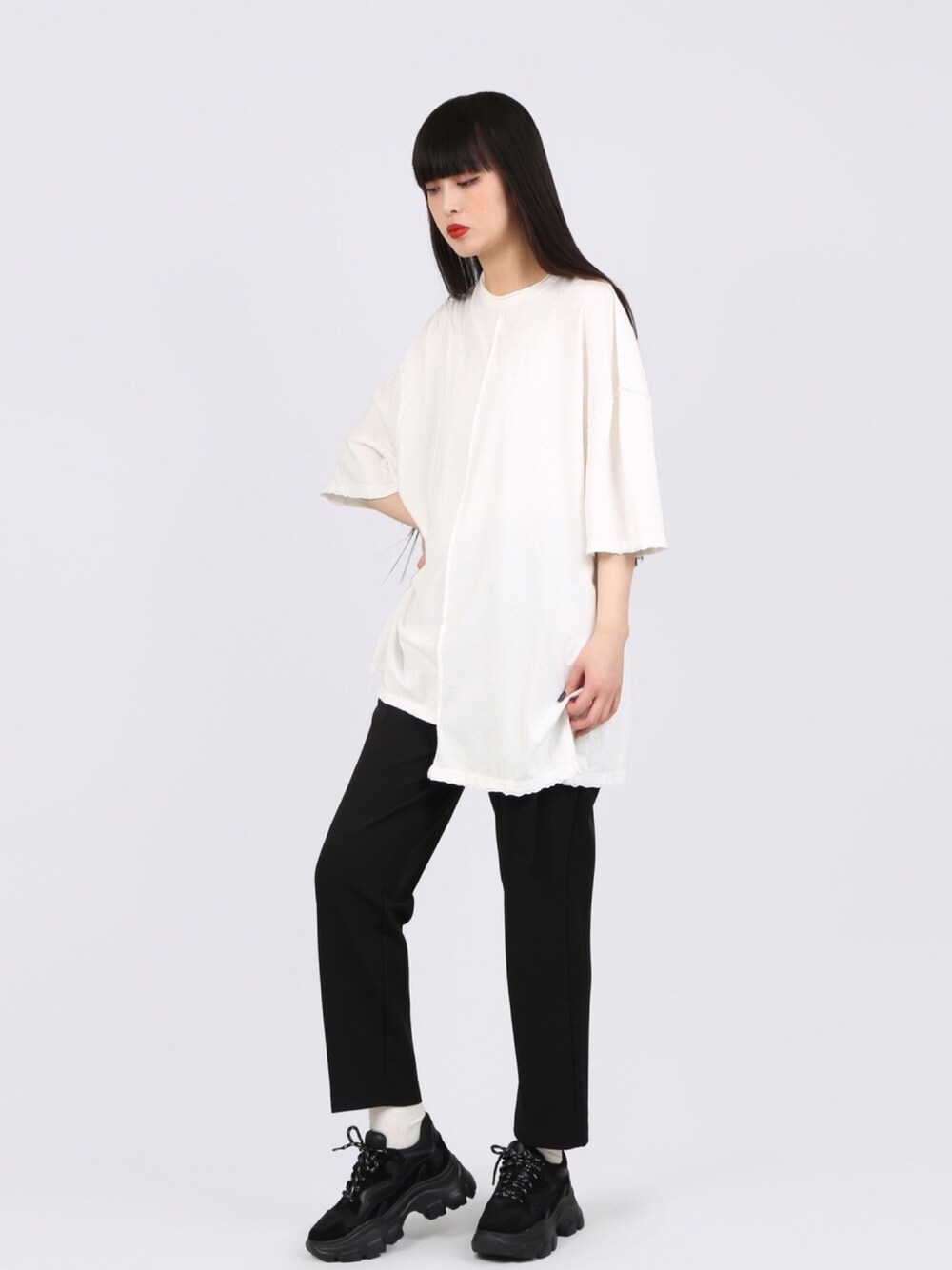 切り替えピグメントTシャツ color: white,black size: free ボリュームソールスニーカー color: gray,black size: small,medium