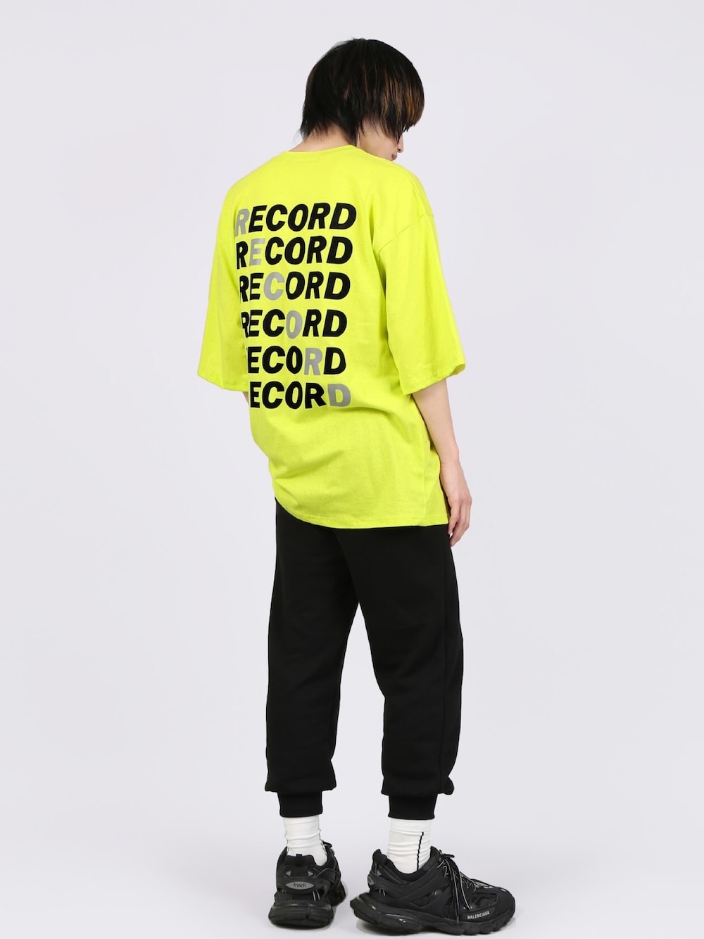 RECORD Tシャツ color: white,yellow,black size: free スウェットパンツ color: yellow,black size: free