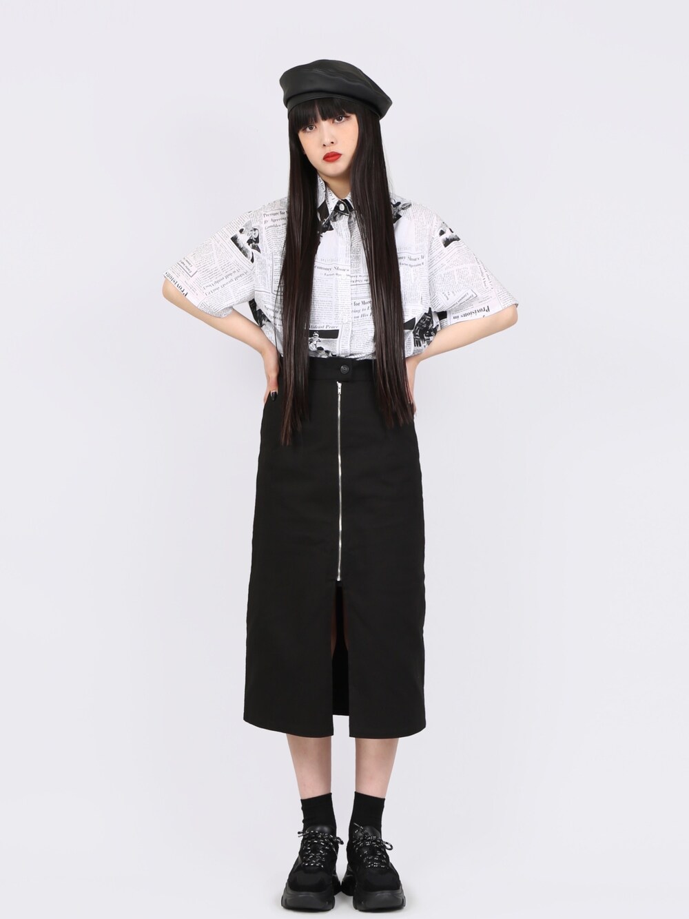 ベルト付きフェイクレザーベレー帽 color: black size: free フロントZIPスリットスカート color: black size: free ボリュームソールスニーカー color: gray,black size: small, medium