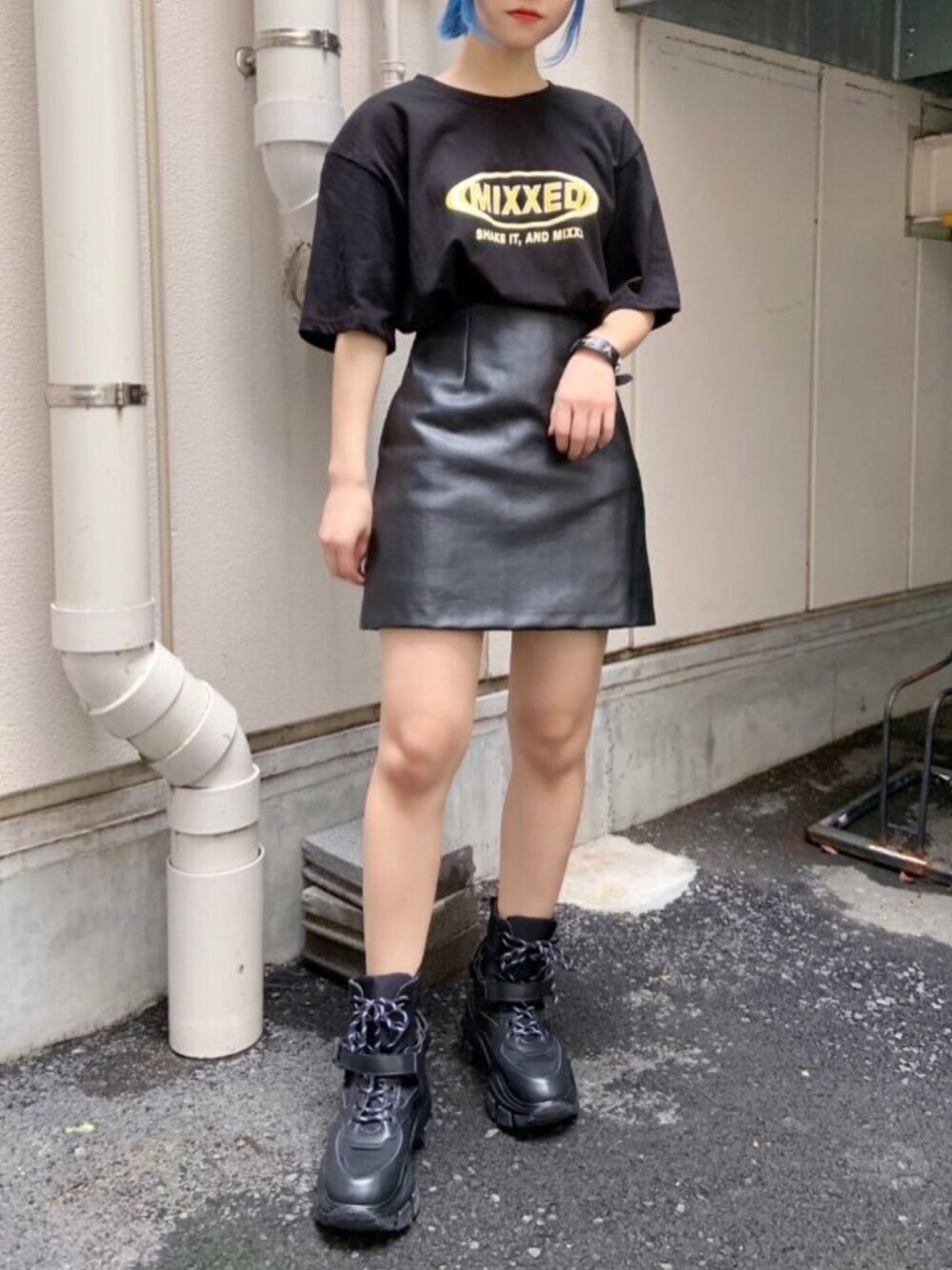 MIXXED T シャツ color: red,white,black size: free メタリックミニスカパン color: brown,black size: small,medium スタースタッズブレスレット color: black size: free