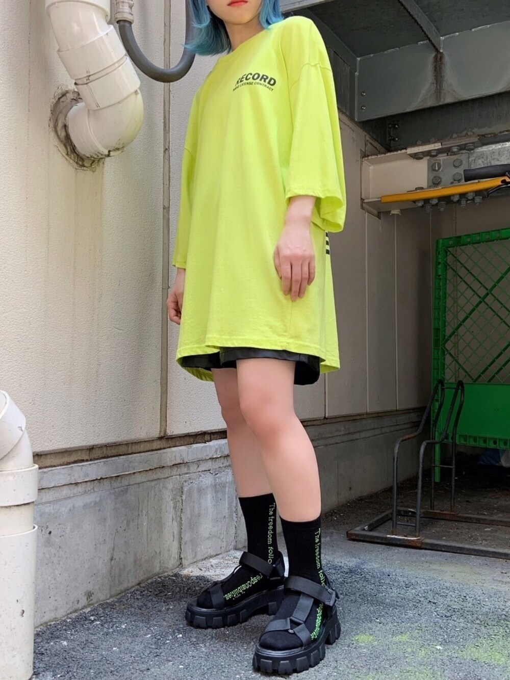 RECORD Tシャツ color: yellow,white,black size: free サイドロゴソックス color: off-white,black size: free