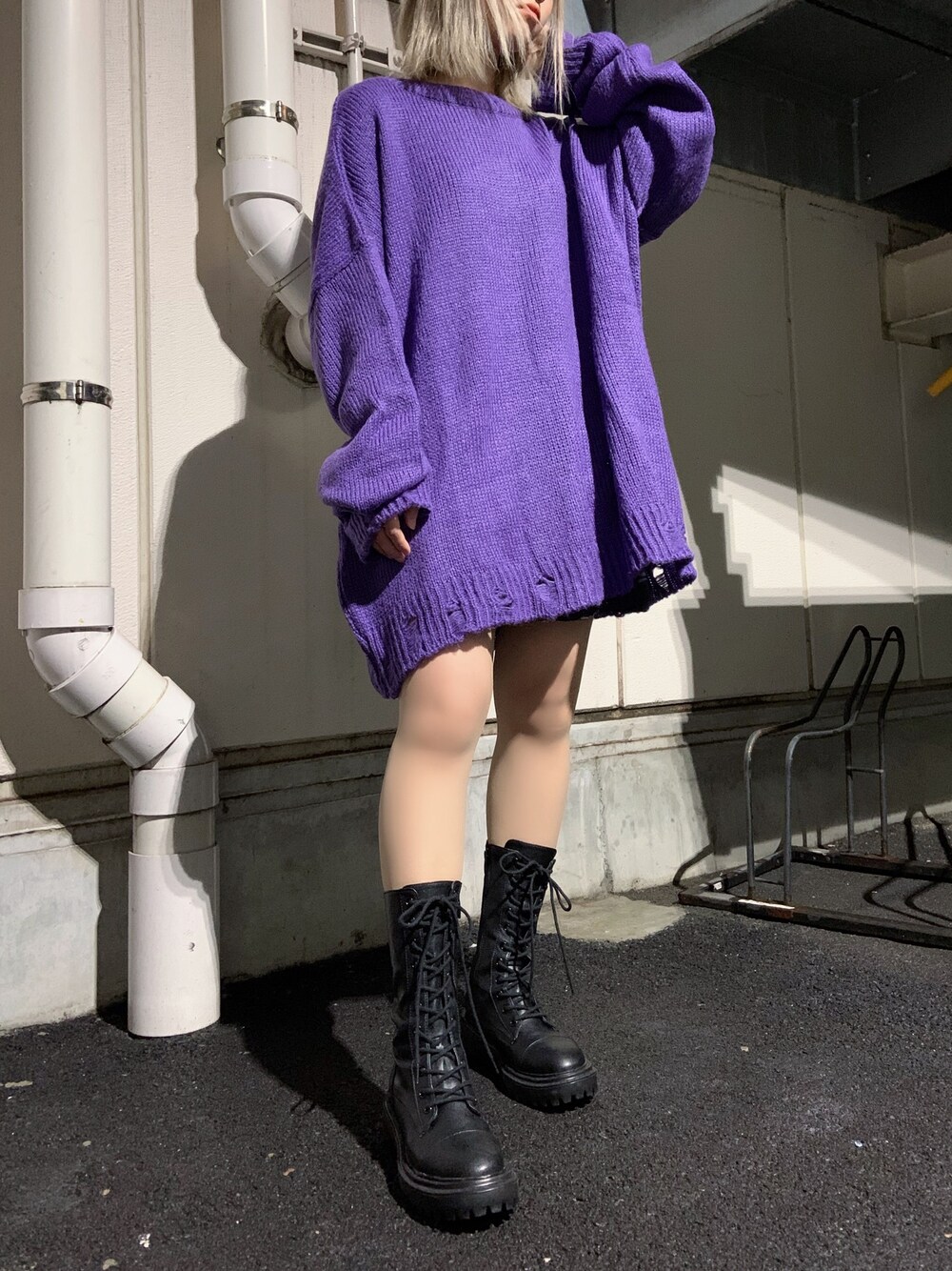 ダメージカラーニットプルオーバー color: green,purple,black size: free レースアップブーツ color: black size: small,medium
