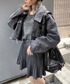 クロップドデニムジャケット color: light indigo blue, black size: free タイダイロゴTシャツ color: yellow, purple, black size: free チェッククリスタルプリーツミニスカート color: light gray, navy size: free ライダース巾着ショルダーバッグ color: black size: free コンバットブーツ color: black size: small(23.5), medium(24.5)