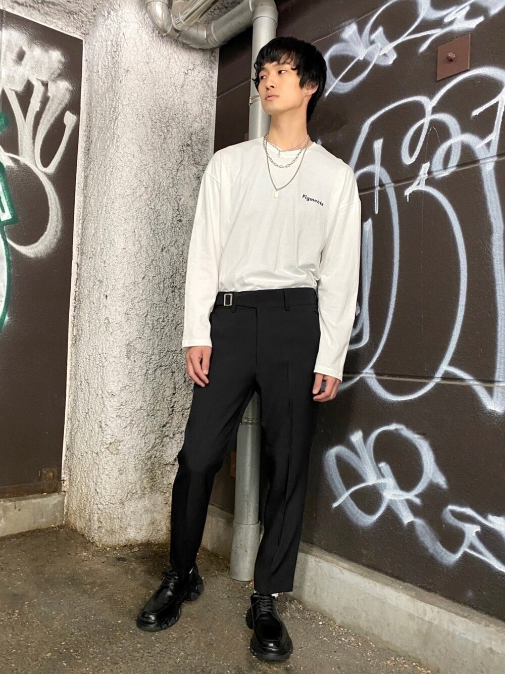 ワンポイントロゴロンT color: green, white, black size:free アジャスターベルトスラックス color: black size: small, medium デザインソールダービーシューズ color: black size: small(26), medium(27), large(28) トリプルチェーンタグネックレス color: silver size: free