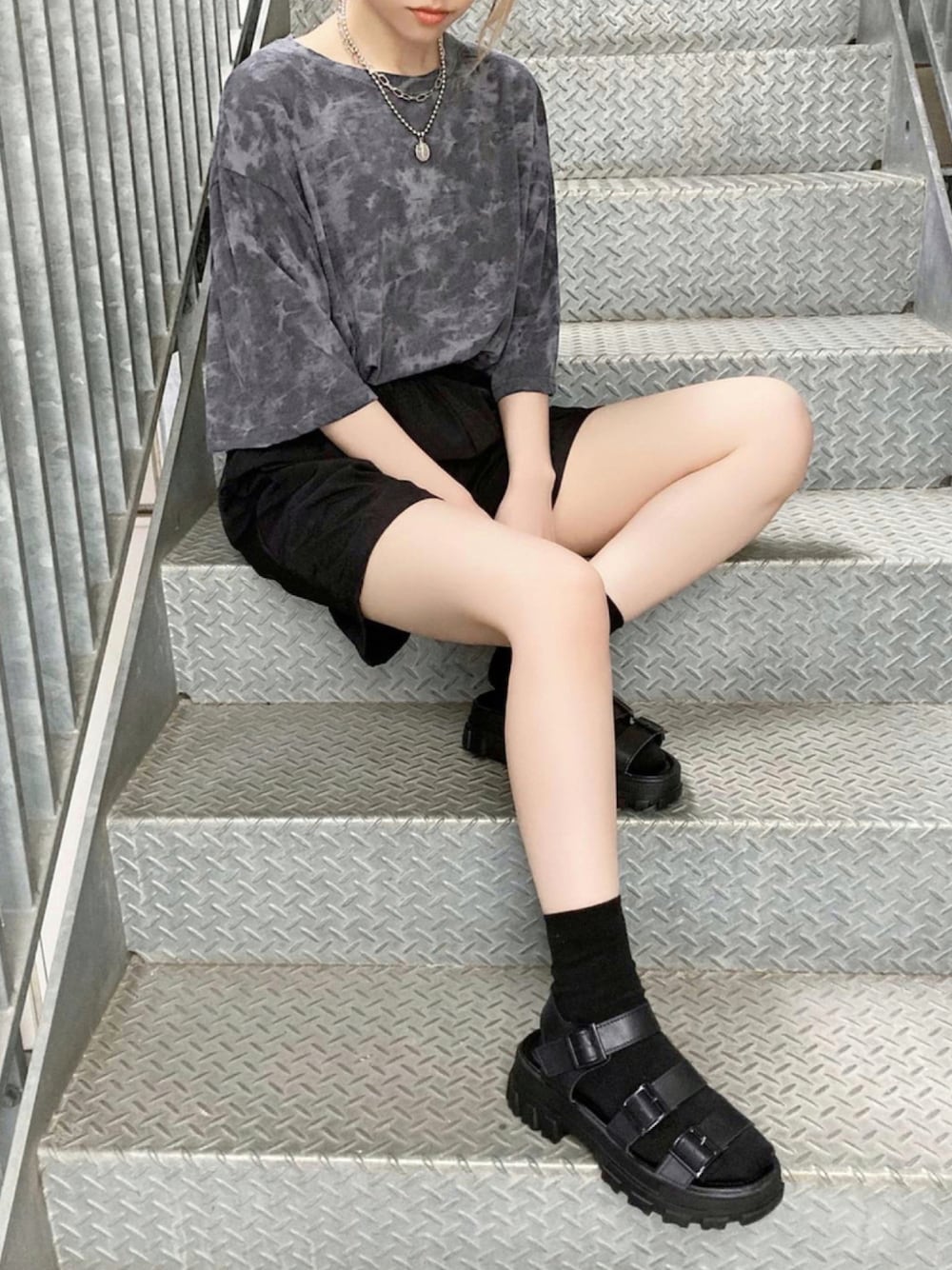 タイダイソリッドT color: green, black size: free ナイロンショーパン color: blue, black size: free ベルトサンダル color: white, black size: small(23.5), medium(24.5) 2連コインネックレス color: silver size: free