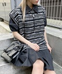 マルチボーダーニットベスト color: white, black size: free フレアシャツワンピース color: white, black size: free ストラップエナメルシューズ color: black size: small(23.5), medium(24.5) ベルト付きフェイクレザーベレー帽 color: black size: free トイチェーン付きショルダーバッグ color: off-white, black size: free オーパルループタイ color: black size: free