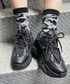 コミックロゴラグランTシャツ color: blue, red, green size: small, medium チェッククリスタルプリーツミニスカート color: gray, navy size: free UGLYスニーカー color: off-white, black size: small(23.5), medium(24.5)