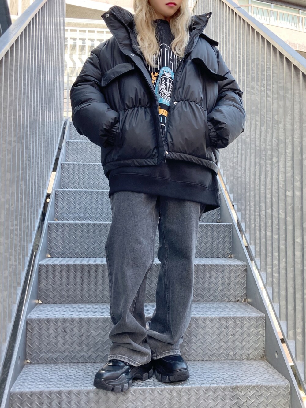 パファージャケット color: white, black size: free SOUTHERNスウェット color: black size: free グラデーションデニムパンツ color: black size: small, medium, large プラットフォームスニーカー color: white, black size: small(23.5),medium(24.5)