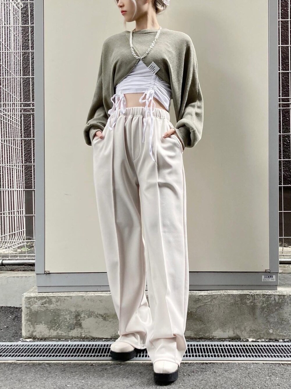 サマーニットボレロ color: khaki, off-white, black size: free ドロストキャミソール color: white, black size: free イージースラックス color: off-white, black size: free パールチェーンロングネックレス color: silver size: free