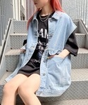 オーバーデニムベスト color: light indigo blue, black size: free MILANO Tシャツ color: black size: free ダブルチェーンネックレス2 color: silver size: free ボリュームレースアップシューズ color: black size: small(23.5), medium(24.5)