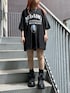 オーバーデニムベスト color: light indigo blue, black size: free MILANO Tシャツ color: black size: free ダブルチェーンネックレス2 color: silver size: free ボリュームレースアップシューズ color: black size: small(23.5), medium(24.5)