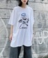 AN ANGEL Tシャツ color: white, black size: free ラージバギーデニムパンツ color: light indigo blue, indigo blue, black size: small, medium, large プラットフォームスニーカー color: off-white, black size: small(23.5), medium(24.5) リングブレスレット color: black size: free
