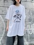 AN ANGEL Tシャツ color: white, black size: free ラージバギーデニムパンツ color: light indigo blue, indigo blue, black size: small, medium, large プラットフォームスニーカー color: off-white, black size: small(23.5), medium(24.5) リングブレスレット color: black size: free