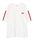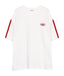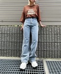 ワンポイントラインTシャツ color: navy, white, black size: free フリンジ切替デニムパンツ color: light indigo blue size: small, medium, large プラットフォームスニーカー color: off-white, black size: small(23.5), medium(24.5) ヘビーチェーンネックレス color: silver size: free