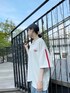 ワンポイントラインTシャツ color: navy, white, black size: free フリンジ切替デニムパンツ color: light indigo blue size: small, medium, large プラットフォームスニーカー color: off-white, black size: small(23.5), medium(24.5) ヘビーチェーンネックレス color: silver size: free