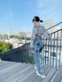 サマーボレロカーディガン color: blue size: free フェイクレザーキャミソール color: white, black size: free フリンジ切替デニムパンツ color: light indigo blue size: small, medium, large ボリュームスニーカー color: white, black size: small(23.5), medium(24.5)