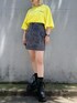 ワンポイントロゴTシャツ color:purple,white,black,charcoal,green,yellow size:small,medium タイダイカーゴミニスカート color:black size:free コンバットブーツ color:black size:small,medium
