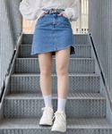 デストロイノースリトップス color:light gray、dark gray size: free トライアングルベルト color: black size: free アシンメトリーデニムミニスカート color: indigo blue size:small、medium