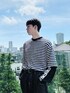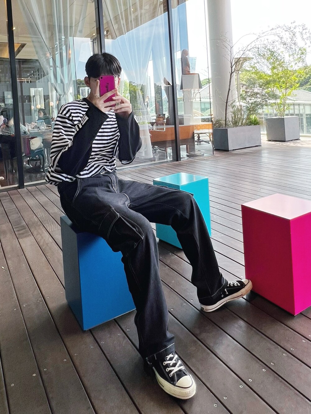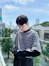 フェイクレイヤードボーダーロンT color:white、green、 blue size:small、medium デニムカーゴパンツ color:black size:medium、large