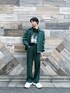 オーバーコーデュロイテディジャケット color: green, black size: large, X-large MANHATTAN Tシャツ color: black size: free コーデュロイバギーパンツ color: green, blue, black size: small, medium, large