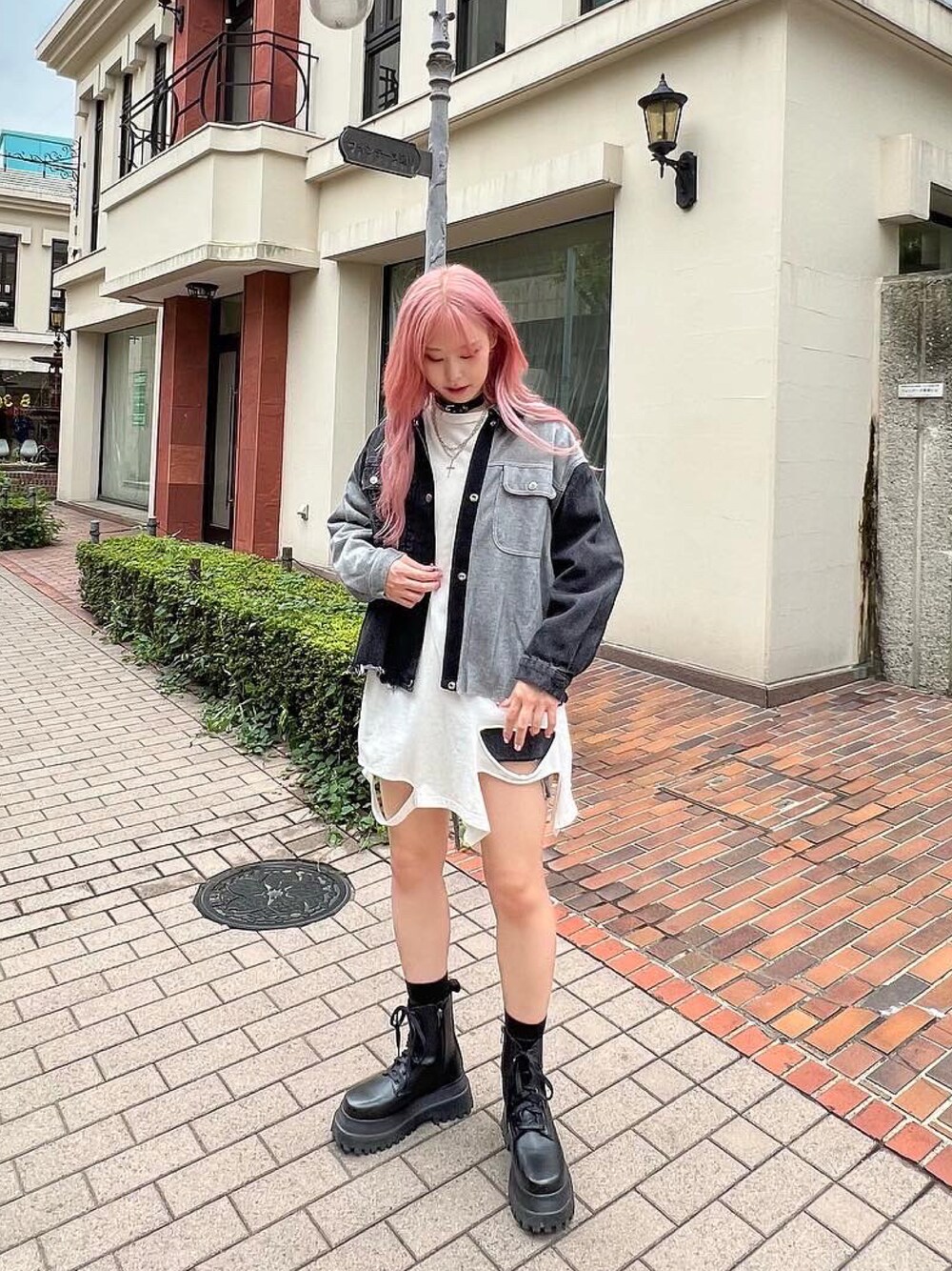 再構築デニムジャケット color: black size: free デストロイロンT color: white, black size: free コンバットブーツ color: black size: small(23.6), medium(24.5) ベルトチェーンチョーカー color: black size: small(23.5), medium(24.5)