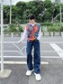 タイダイ柄ベスト color: orange, gray size: free ワイドタックデニムパンツ color: indigo blue size: small, medium, large