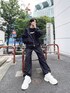ナイロンパーカー color: black size: free フェイクレイヤードロゴロンT color: blue, white, charcoal size: small, medium ナイロンカーゴパンツ color: black, khaki size: free