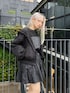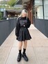 what if ロゴロンT color: light gray, black size: free クロップドZIPパーカー color: gray, black size: free ティアードミニスカート color: black, plaid size: free プラットフォームスニーカー color: black size: small(23.5), medium(24.5)